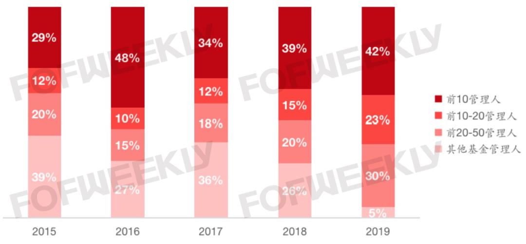 LP受外部环境和经济下行影响,风险偏好降低,导致资金向头部机构聚集效应增强,不同梯队的头部机构呈现出不同的扩张态势。第一梯队平稳增长,第二、三梯队增长较快,截至2020年底,行业前20%的基金管理人管理着市场上超过90%的资金,头部机构募集超大体量基金事件频发,剩余大批机构面临着募不到资的困境。