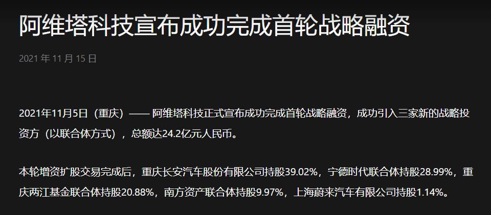 2021年5月份,当年创立长安蔚来品牌的双方股份却已经分别被稀释到了39.02%和1.14%,在引进了占股约28.99%的动力电池巨头宁德时代入局之后,原本名存实亡的“长安蔚来”也隐去了长安、蔚来的名头,将名字改成了阿维塔科技。