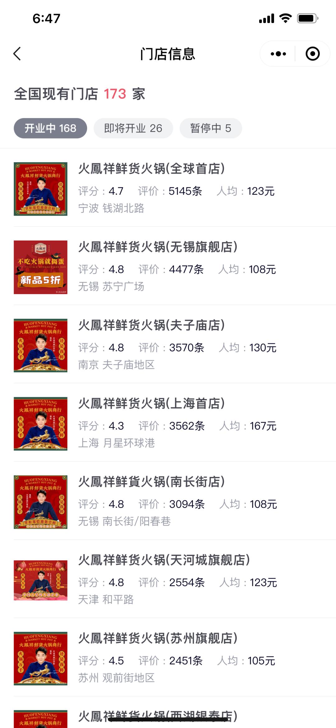 明星效应加上“网红店”的属性,让火凤祥从一开始就吸引了大批客流进店打卡,也吸引了众多加盟商的进场。媒体报道,火凤祥在开店2个月的时间里,加盟店的数量达到了50家。窄门餐眼数据显示,目前火凤祥全国现有门店173家,其中5家暂停营业,另外还有26家门店即将开业。