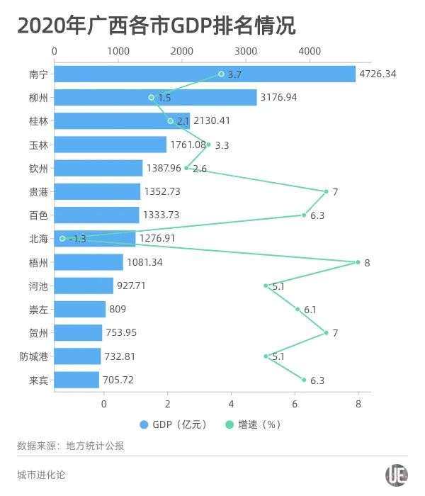 统计数据显示,无论是作为广西第一大工业中心城市的柳州,还是坐拥丰富旅游资源的“初代网红”桂林,“十三五”时期在全区经济总量中的份额占比均出现下降,桂林更面临人口“出走”压力。