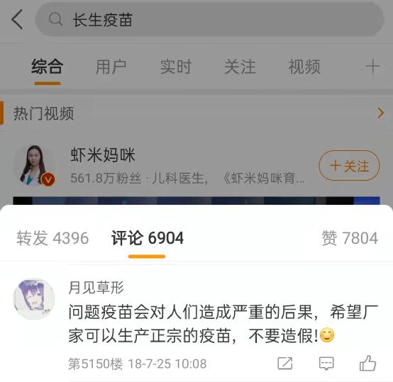 微博上网友对疫苗的正向讨论。