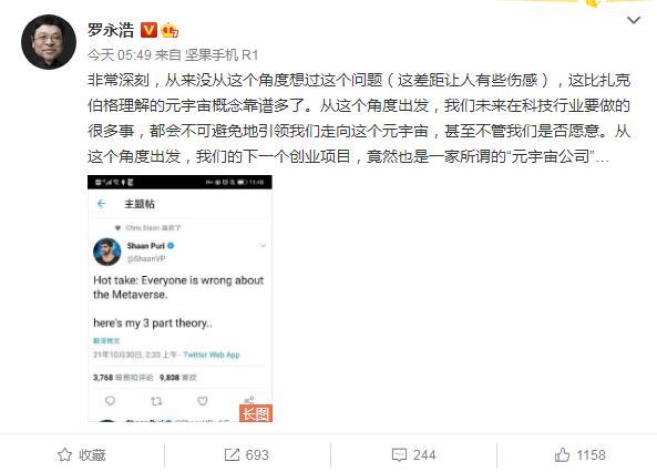 正如被罗永浩转载的推特博主Shaan Puri所说,大多数人认为“元宇宙”是一个虚拟的地方,但是真正的元宇宙指的是数字生活比物质生活更有价值的时刻,这个渐进的变化已经发生了20年。
