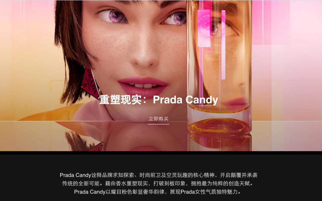 2011年Prada推出了Candy香水,而其香也如其名带有糖果香,所以这是一款针对年轻世代的香。而这支香水的广告也相对比较创新,总是展示年轻女性活泼可爱的一面。