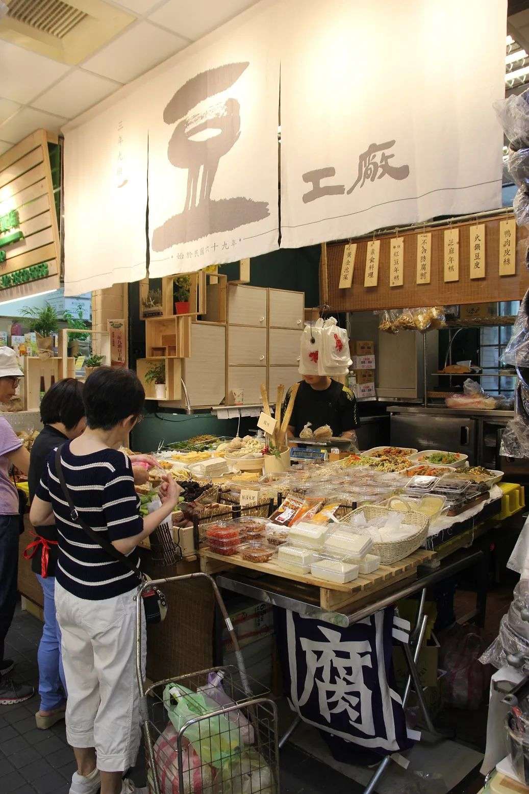 所有的摊位和空间格局没有做大的改造,而是从店面和标牌等软装入手,将每个摊位的故事和特点进行各具特色的视觉包装,这不仅让店家们欣喜不已,更令顾客们能一眼就识别出摊位,美观又便利。而对年轻人们来说,台北这座本就浓缩了“小确幸”和清新文艺感的城市,也让士东菜市场的文艺气质毫不突兀,并重新成为年轻人心中的生活新地标。