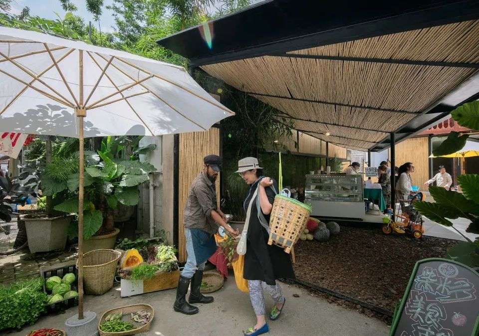 大理米多农场餐厅和生活市集,以当地白族民俗为特色,将破败的办公区改造成一个集合了市集和餐厅的新型“菜市场生态圈”。 © 赵扬建筑工作室