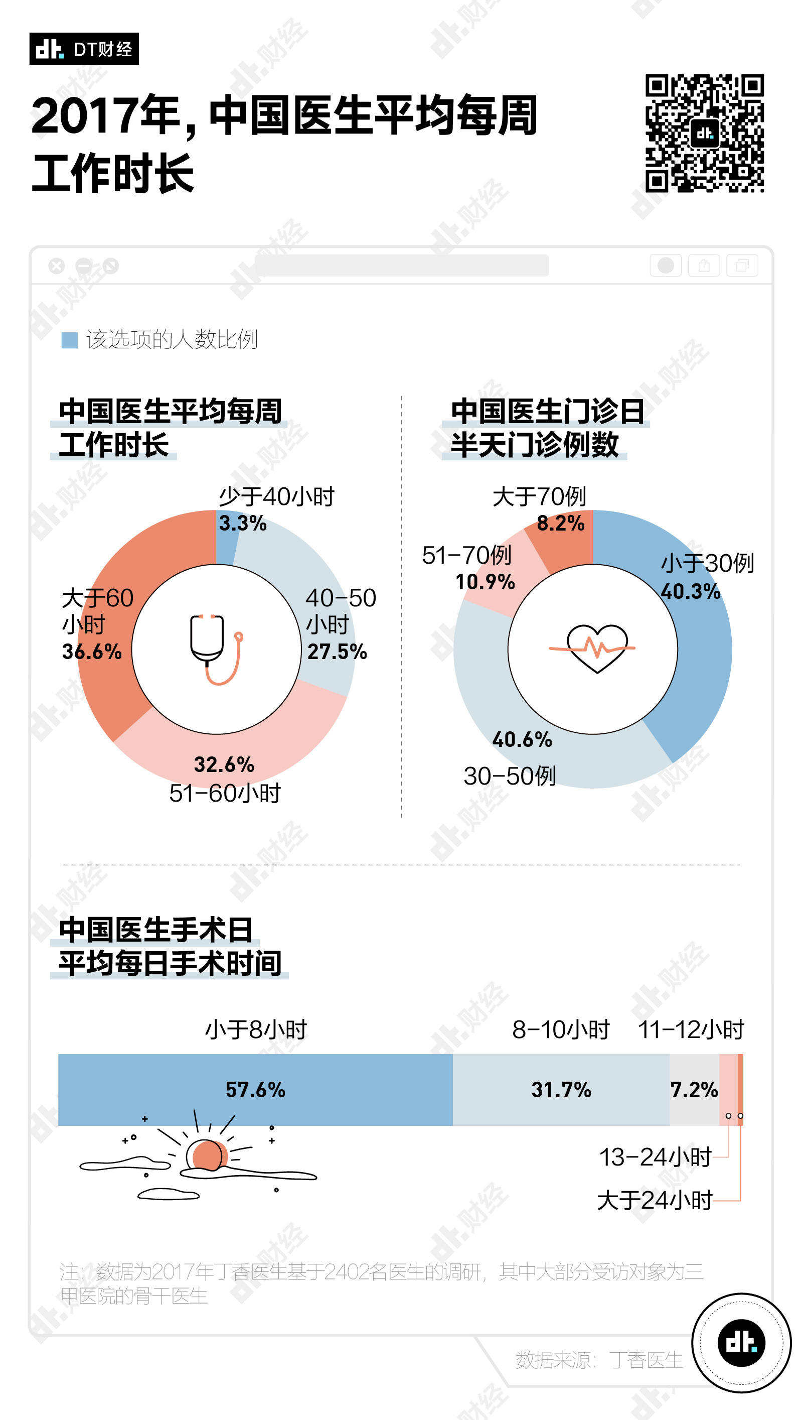 这段进击之路,常常是由无数个病例和不眠夜组成的。丁香医生2017年的一项调研显示,高强度、长时间工作是医生们普遍面临的问题。