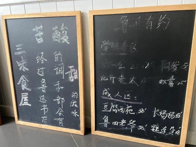 据介绍,鲁博书屋已经开了三十余年。鲁迅书店内设三味食屋,九斤老太、鲁四老爷、豆腐西施、鲁迅待客茶等饮品价位在15元到98元不等。抛开这些噱头,两家店内所售主打产品大致雷同,如果你在前面一家买的明信片,拿到后面一家盖纪念章,有时会被店员厉声呵斥。