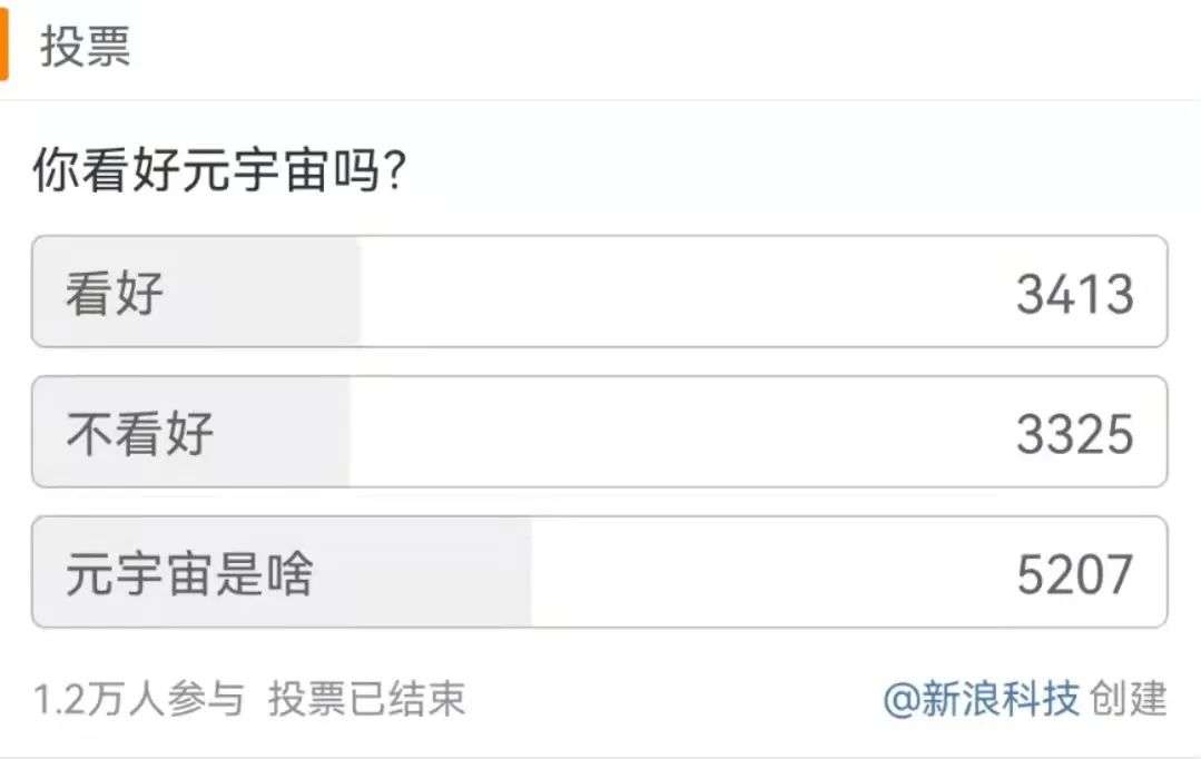 耐人寻味的事情有两件。其一,虽然元宇宙是个热词,但微博发起投票问网友看不看好元宇宙,半数网友还是懵逼了,元宇宙是啥?