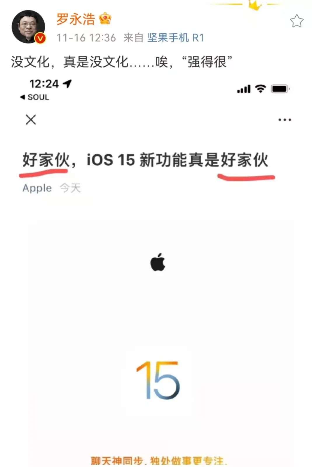 罗永浩吐槽苹果文案没文化,网友点开大图一看,截图右上角清清楚楚一个「SOUL」。
