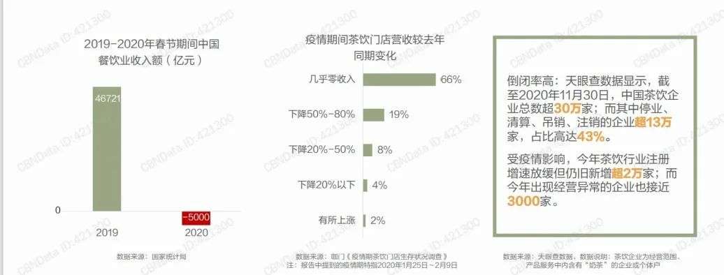 根据公开数据显示,去年全国新开的奶茶店中有九成面临亏损,同时茶饮行业注册增速放缓,2020年出现经营异常的企业接近3000家。