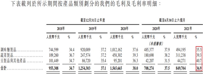 毛利率也接近40%,高于辣条毛利率的35.3%,所以蔬菜制品营收快速增长对卫龙整体毛利率增长有带动作用。而豆制品营收占比相对较小。