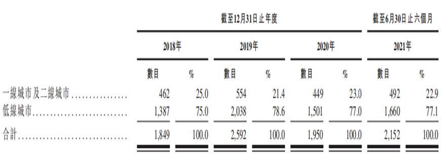 截至2021年6月底,这一数量已增长为716个,而这其中分别有473个、533个及650个县域位于低线城市。