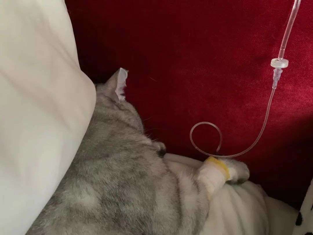 可见面之后,张明发现这只猫已经没有力气反抗抓人了——“很瘦,摸起来整个皮子是蔫的,回弹力很差。脱水比较严重,需要进行补液。”