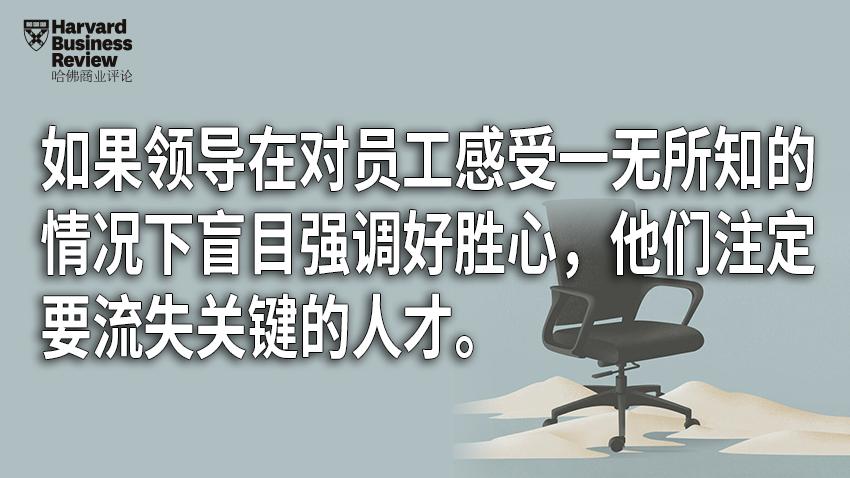 有些领导认为,增强好胜心是取得成绩的唯一途径。然而如果领导在对员工感受一无所知的情况下盲目强调好胜心,他们注定要流失关键的人才,而且容易导致团队表现失常,进而降低工作效率。成功的未来商业领袖,需要更深入地了解员工如何看待你的领导方式,确定自己的行为在鞭策激励员工的同时,没有致使团队人心涣散。