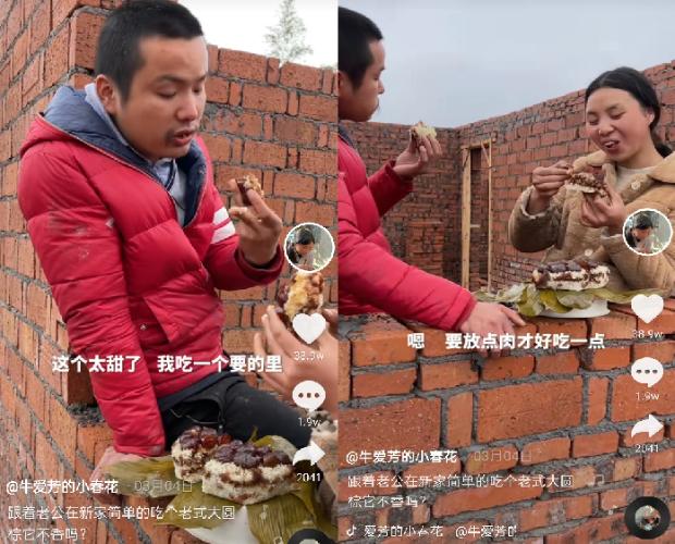 视频男主角牛爱芳为了拍视频伪装成农民艰苦奋斗,从白净小生变成了有两撇胡须的中年农夫。女主角小春花则于2019年就开始发布短视频,彼时的人设和风格,与现在大相径庭。很多人认为,视频内容均为预设好的剧本,就连去年吸粉无数的“建房子”系列视频也被认为是“做戏”。