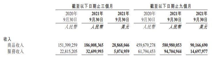在收入类别方面,来自商品的收入为1860亿元,而来自服务的收入为327亿元。