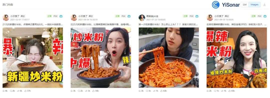 在B站说新疆炒米粉的,多是探店和吃播,这才是和食物的色香味直接相关的。