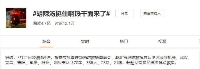 再者,如今的地域美食,很多时候已经成为了一种文化符号,代替省份出现在社交平台上。比如在郑州洪水期间,就曾有热搜词条 #胡辣汤挺住啊热干面来了#,这与热干面本身没有太大关联。