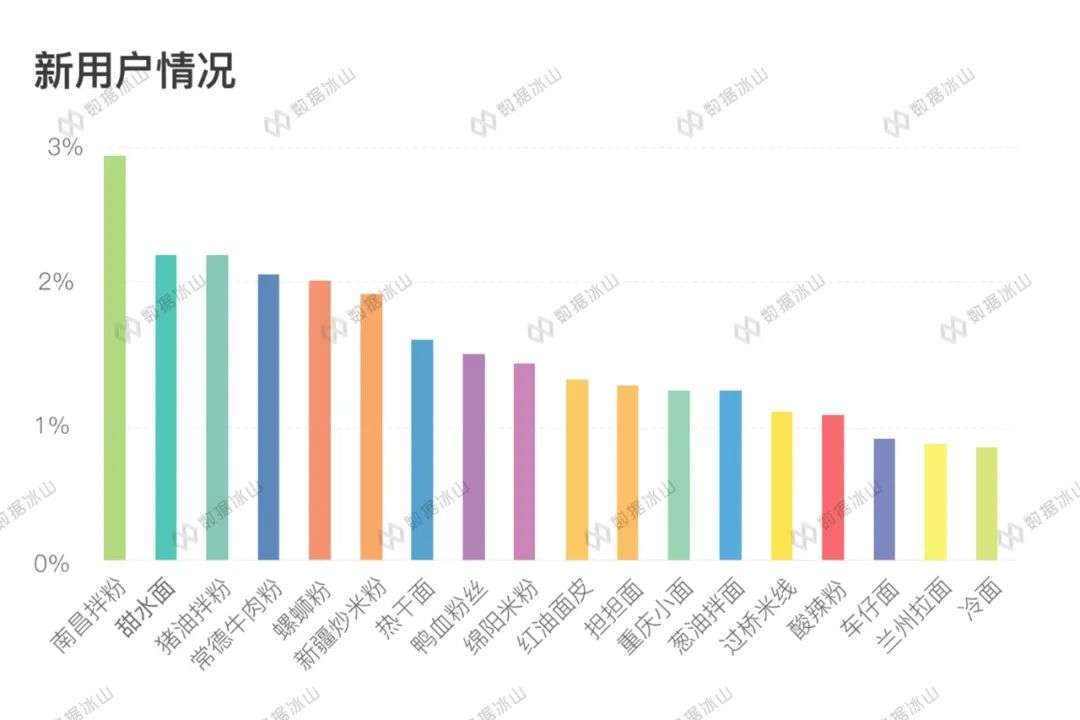 可以发现,南昌拌粉吸引新人的能力一流,远超其他品种,新用户的评价也很不错。