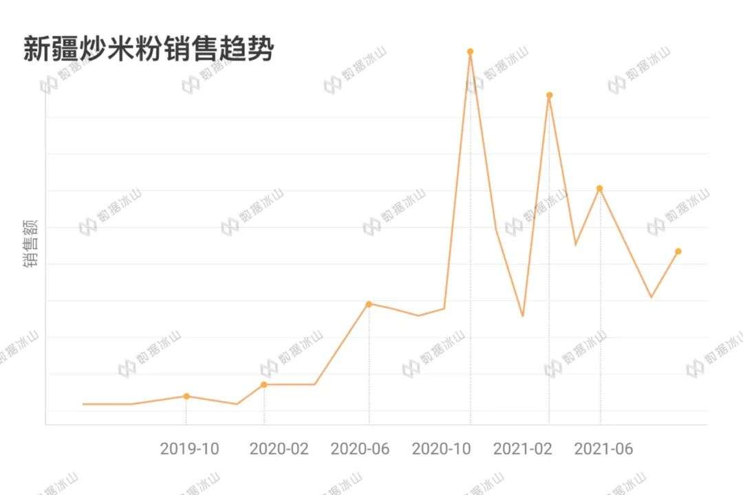 仅剩的一个高增长,新疆炒米粉,冰山君怎么也找不到原因,因此又回到销售表现上,发现在2020年10月出现了暴涨。