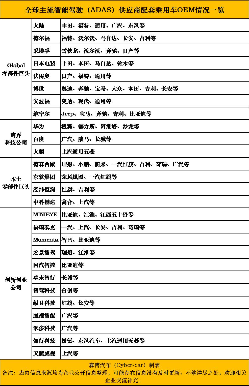 目前来看,Global零部件供应商依旧占据ADAS市场的主体,尤其是在合资、豪华品牌有着不可撼动的地位。