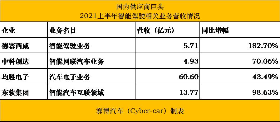 翻阅德赛西威、均胜电子、中科创达、东软集团等上市公司2021年半年报可以发现,这些企业的智能驾驶业务相关板块都有大幅增长。