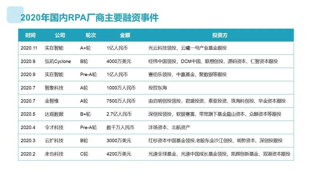 国内RPA赛道从2018年的迅速升温,到2019年各家纷纷融资、行业格局渐显,再到跨越疫情,融资热潮延续至今。行业热点变幻莫测,经得起时间考验的才更具发展势能,那么RPA是否已经拥有了穿越周期的硬核实力呢?