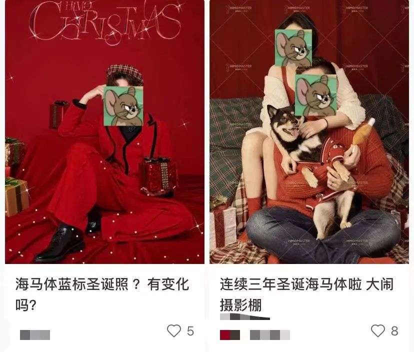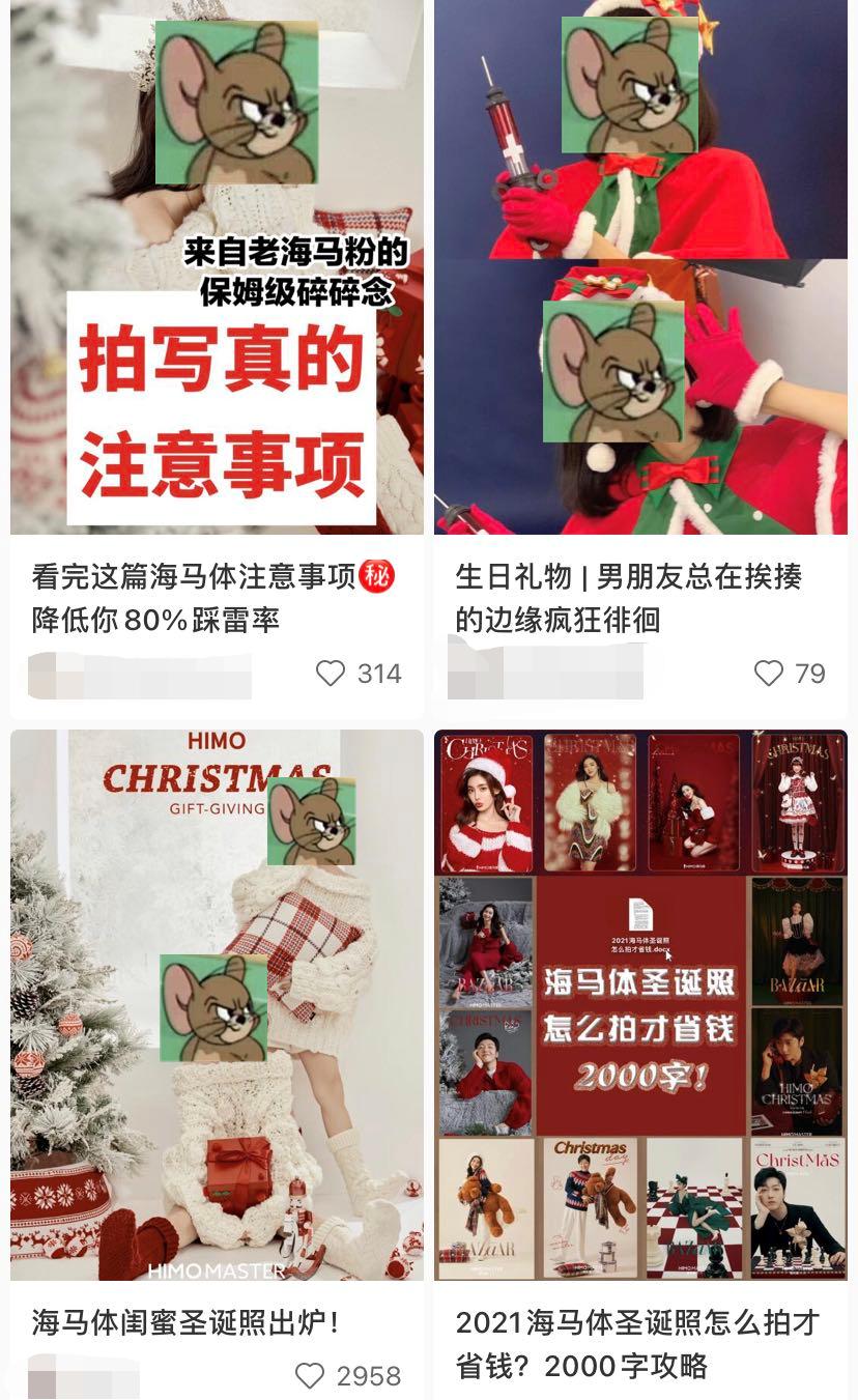 在“生活需要仪式感”这句Slogan深得年轻人心的当下,海马体借势在小红书上做了一波强推广,甚至营造出了一种小红书上人手一套海马体圣诞照的景象。
