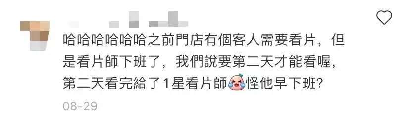 碰上当天看片约满的情况,有的顾客会说“你就不能加班或者早上早点来给我修吗”,只要看片师拒绝,立马被投诉,理由是看片师不愿意加班。
