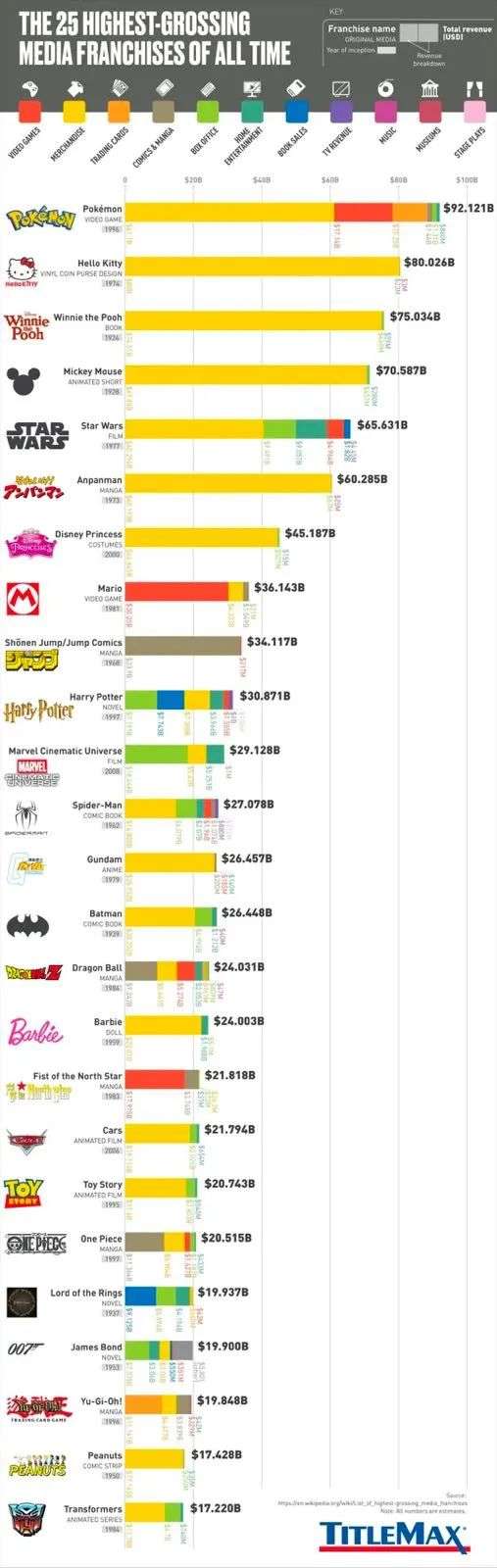 ▲2019全球最赚钱25大IP(图片来源:TitleMax)