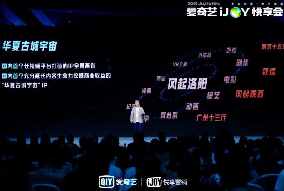 ▲爱奇艺PCG总裁兼首席内容官王晓晖介绍“华夏古城宇宙”系列IP