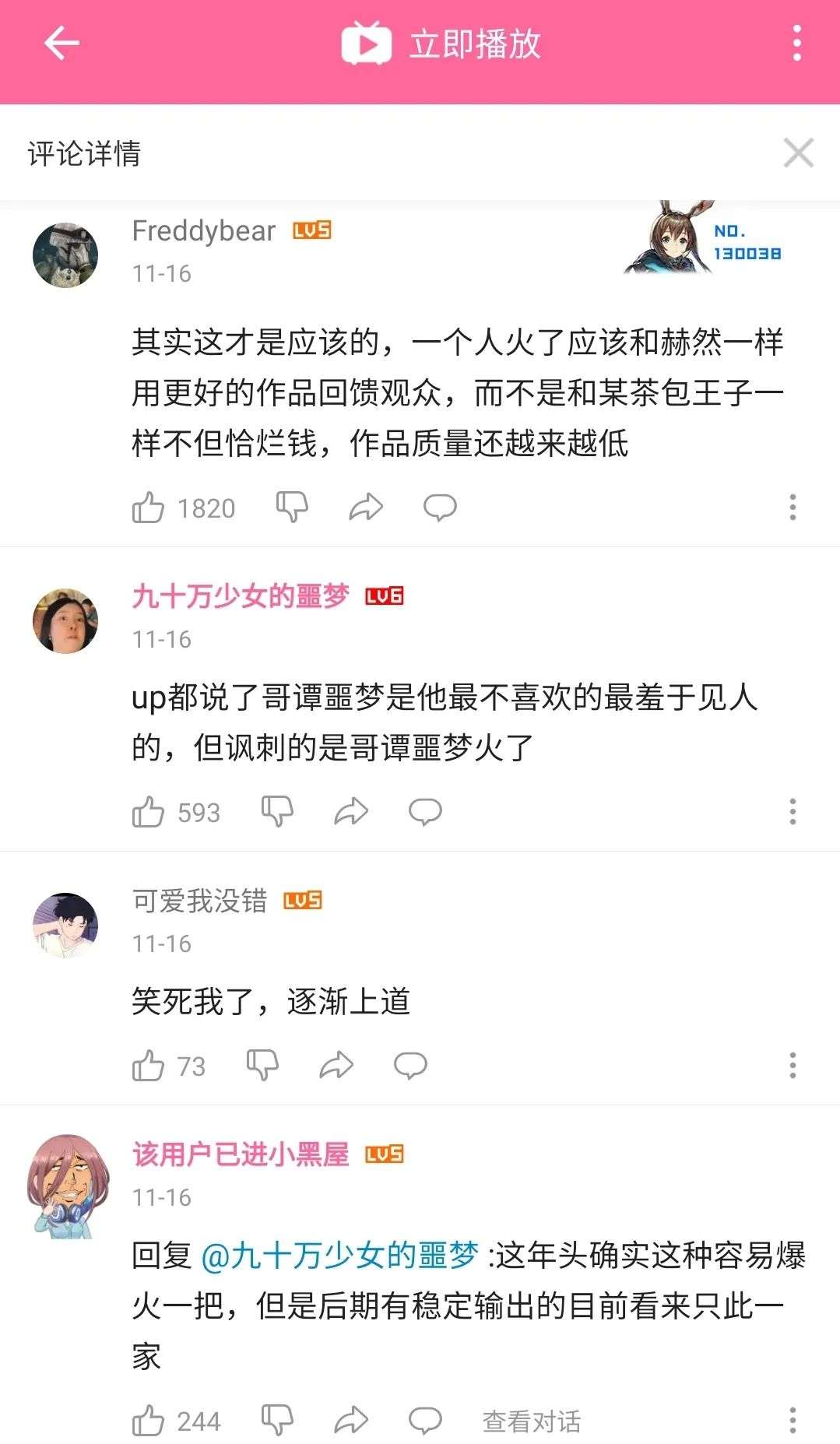 这与评论区网友的核心观点一致:做出爆款的up主很多,但是后续能以更好作品回馈观众的,屈指可数。