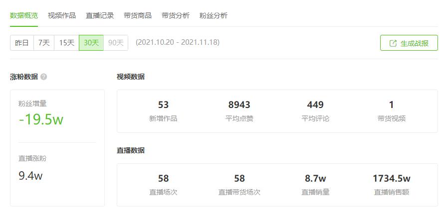 前几天,鸿星尔克又上了热搜。和之前相反,这次是因为野性消费的热度消散之后,鸿星尔克陷进了掉粉、销量下滑的尴尬处境。飞瓜数据显示,近30天鸿星尔克官方账号在抖音共掉粉19.5万,58场直播累计卖出1734.5万元,与7月23日的单天2200万元销售额仍有差距。
