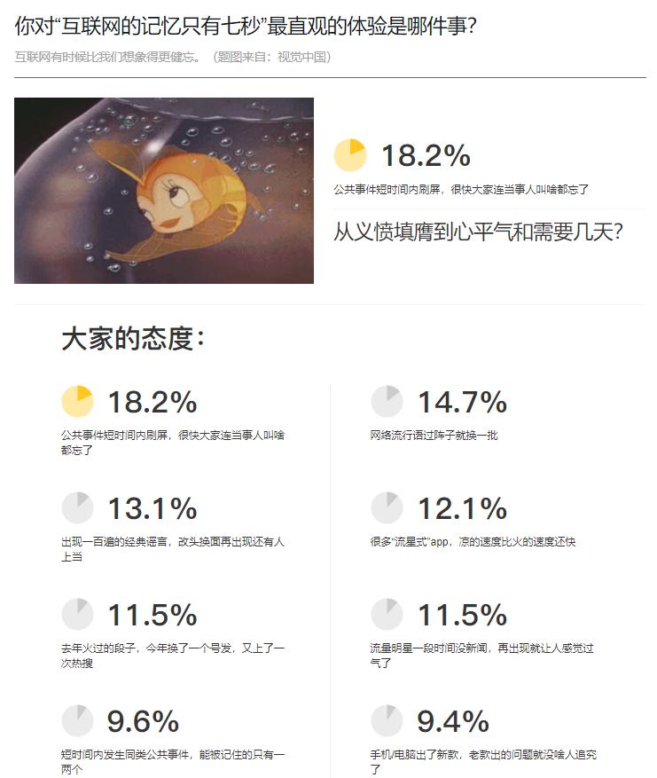 《好奇心报告》曾进行过一次调研,主题为“你对‘互联网的记忆只有七秒’最直观的体验是哪件事?”