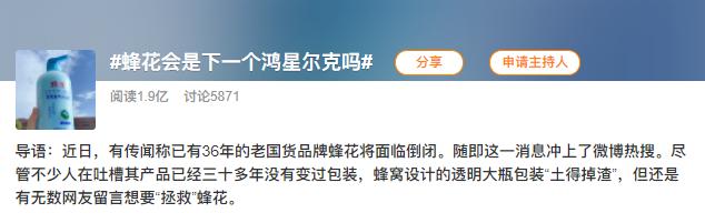 再看如今上榜的蜂花,同样是一夜爆火的老牌国货,鸿星尔克的大起大落,或许就是对蜂花故事走向的剧透。#蜂花会是下一个鸿星尔克吗#由此成为新的热搜话题,目前在微博已经接近2亿阅读量。