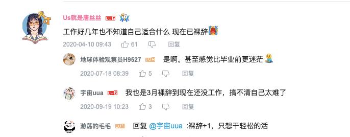 随着00后开始进入职场,“前辈们”开始不自觉感觉到惶恐,“内卷”、“996福报”、“三胎”、“离婚冷静期”,生活的压力不断加重,工作多年依旧没有职业规划的人比比皆是,这就不难看出带有“裸辞”标签的视频会持续在网上火起来,无论屏幕那边是否离职,在职的打工人都会下意识点进去,寻求一点虚幻的快乐。
