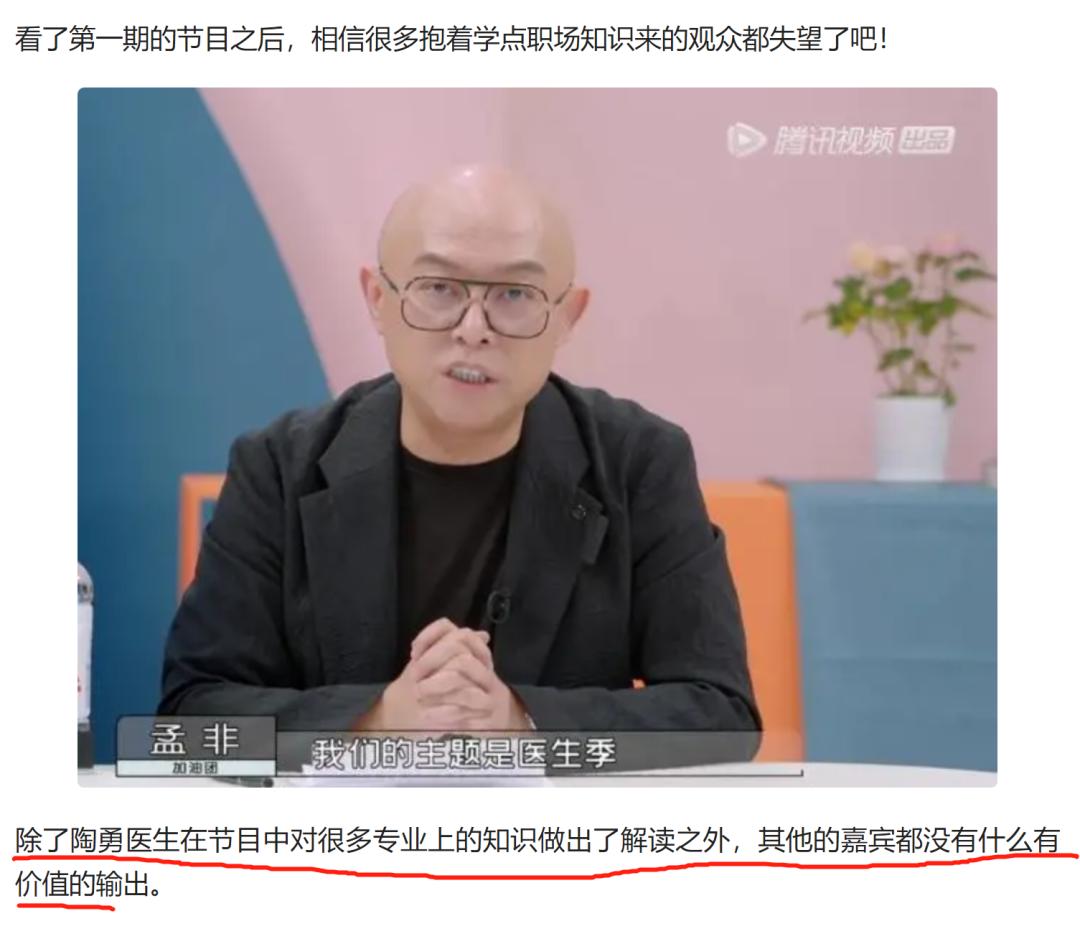 更能够成为热门综艺的选题——或者说因为聊到了“职业规划”才让综艺变得热门——《令人心动的offer第二集》面试篇就靠“你未来5年的职业规划是什么”出了圈,也直接影响到了第三季:有人直接指出这一季节目质量明显下降,因为节目聊了太多医生、医学上的话题,却很少分享职场知识。