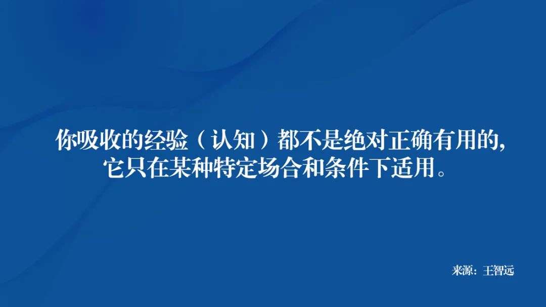 换言之,你吸收的经验(认知)都不是绝对正确有用的,它只在某种特定场合和条件下适用。