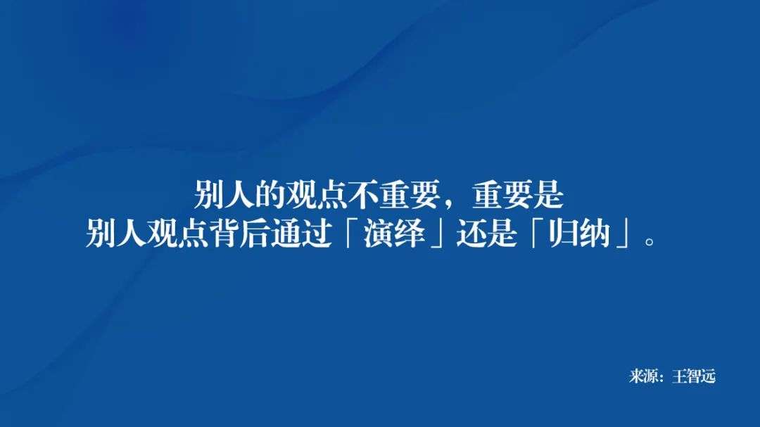 总而言之,我们能得到什么结论呢?别人的观点不重要,重要是别人观点背后通过「演绎」还是「归纳」很重要。