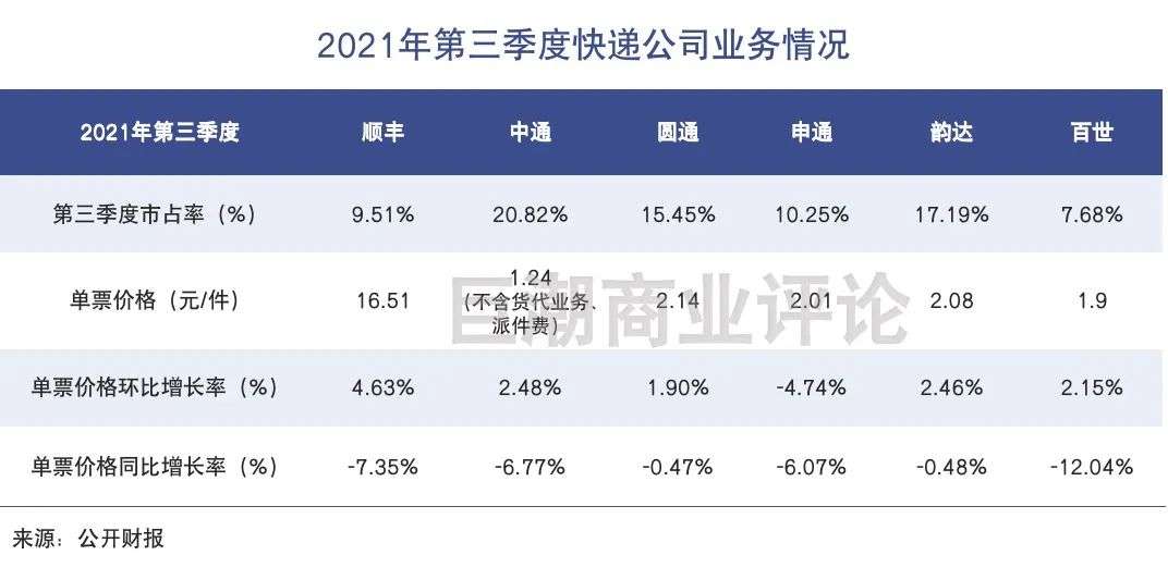 不过值得注意的是,从第三季度数据来看,虽然快递公司的单票收入环比回升,但普遍尚未恢复到2020年的同期水平。