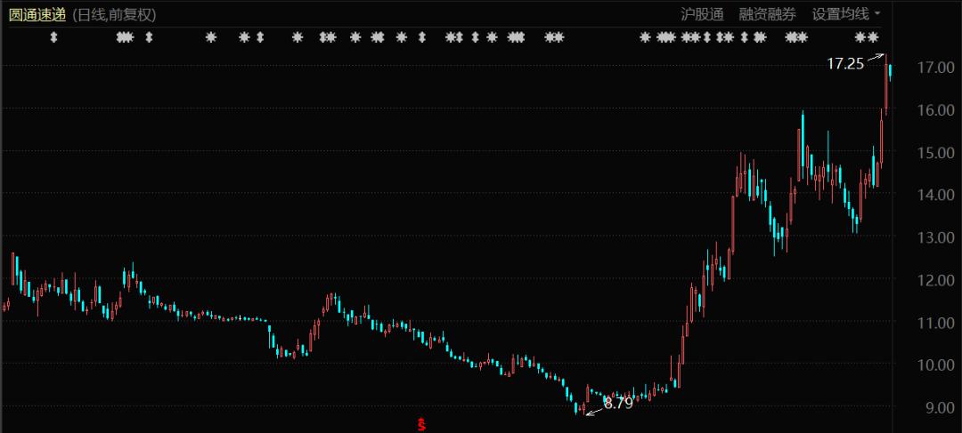 可以看到,圆通速递的股价自今年7月末触底之后,随即出现反弹,目前股价距离7月末的最低点已经接近翻倍。尤其在9月1日上调派件费、9月下旬提升快递服务单价,以及双11期间出现连续上涨,走势喜人。