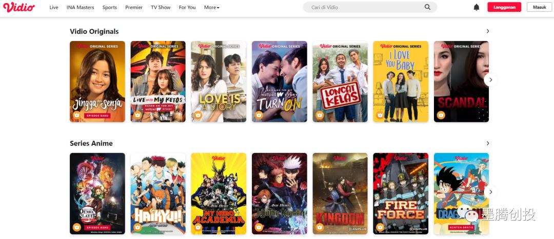 如果我们看到Vidio首页推荐,主要版面都留给了本地影视内容和日本动漫 - 也在某种程度上让大家了解到主要的受众和喜好: