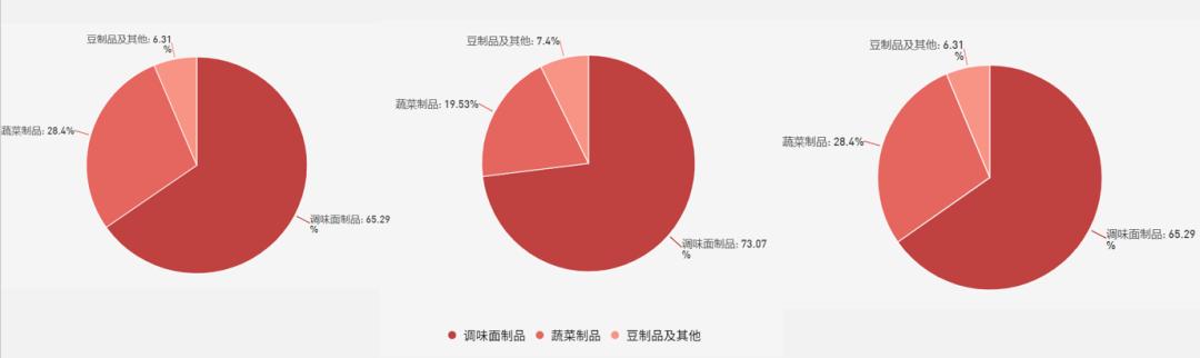 在卫龙的财报里,辣条被归为“调味面制品”。卫龙旗下产品还包括蔬菜制品、豆制品以及其他产品 ,但一直以来,消费者给卫龙的标签还是“辣条一哥”。而且近三年来,卫龙的产品重点都放在了调味面制品上,虽然增速有所下降,但总营收占比依然在65%以上。