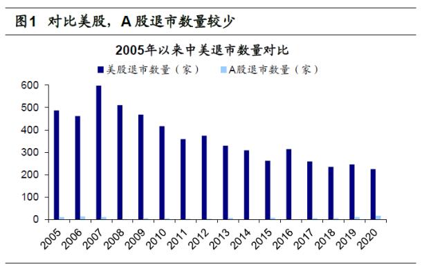 海通证券整理的数据显示,2005-2020年美股年均退市公司达到366家,而A股退市公司仅为个位数。另外1999-2020年A股126家退市公司中,主动退市的有46家,被动退市的仅有30家,退市制度不完善导致A股小市值个股大量积聚。