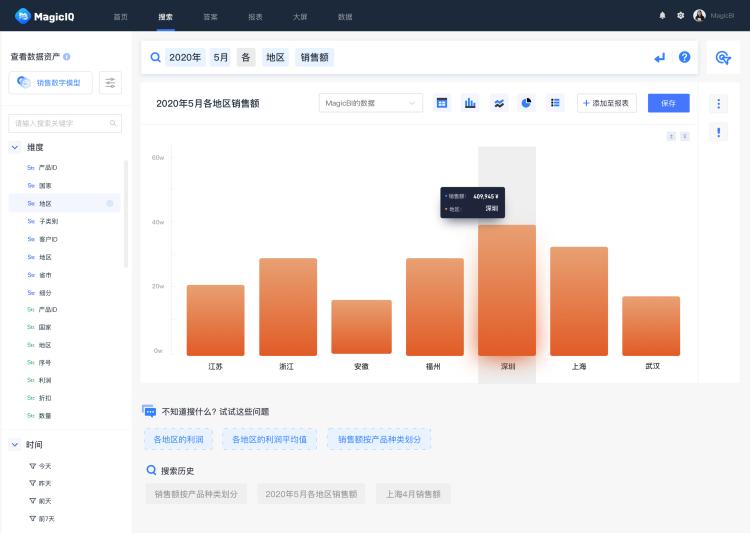 为了解决这些痛点,MagicBI研发出一个AI数据智能搜索和分析平台。该平台可解决企业转型中所面临的的数据需求与供给之间的矛盾,并具备易用性等优势。