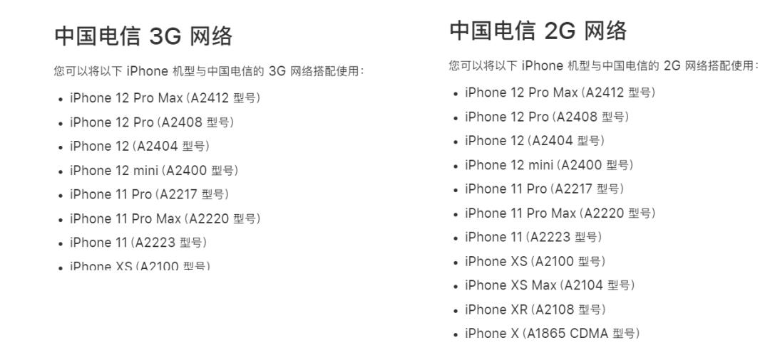 苹果官网信息显示,iPhone 13 全系列不支持中国电信 2G、3G 网络,如果你需要使用电信 2G、3G 网络,只能使用 iPhone 12 系列及其以前的特定型号。