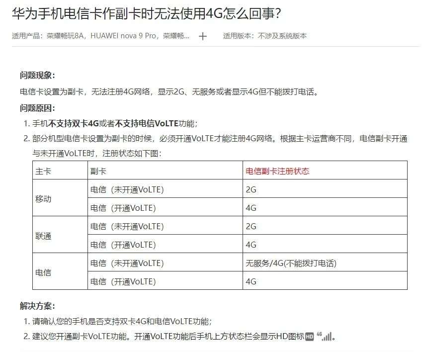 出现这些问题的手机,实际上是已经完全或部分地剔除了电信 CDMA 网络制式。与其相关的打电话发短信等任务,可以通过 VoLTE 技术解决,无需再借助昔日的 2G、3G 网络。VoLTE 为全网通补齐了最后一块技术拼图,中国电信也得以抖落 2G、3G 网络的历史包袱。