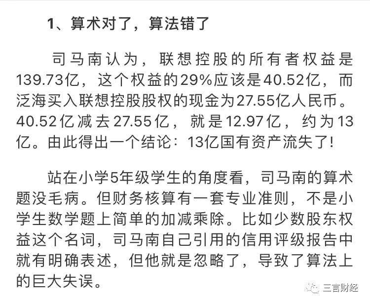 有人认为,司马南的文章《中科院贱卖13亿国有资产白送泰山会?》算术对了,但算法错了。