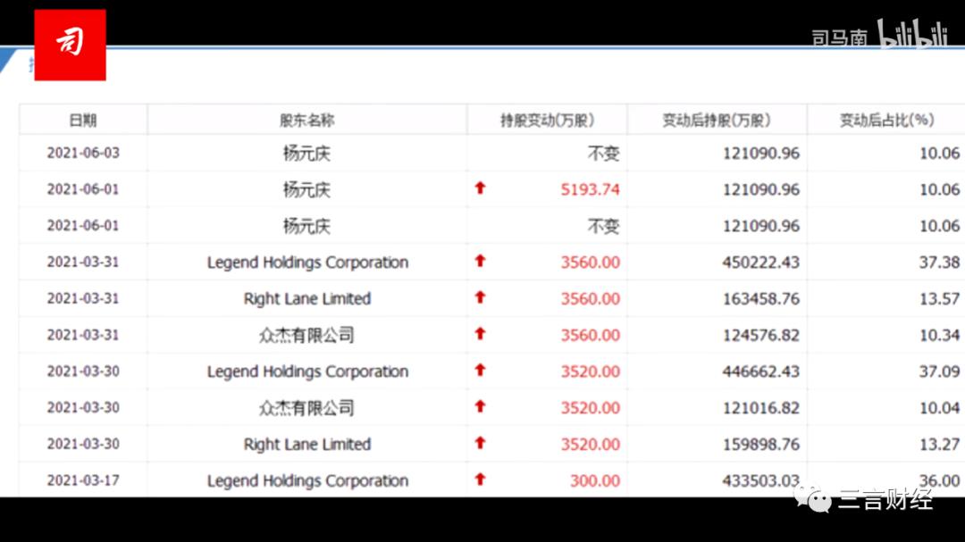 此外,司马南还列出了杨元庆的股权已超过中科院,去年联想集团净资产234.5亿,杨元庆个人资产高达100亿。27个高管,2020年拿走了9.34亿元。联想集团负债率90.5%,欠供应商1000多亿,资不抵债,富了方丈穷了庙。