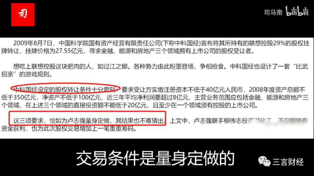 之所以能低价转让给泛海控股,司马南称,这个股权转让限制条件很多,只有泰山会的泛海控股符合入围条件,是为泰山会量身打造的。